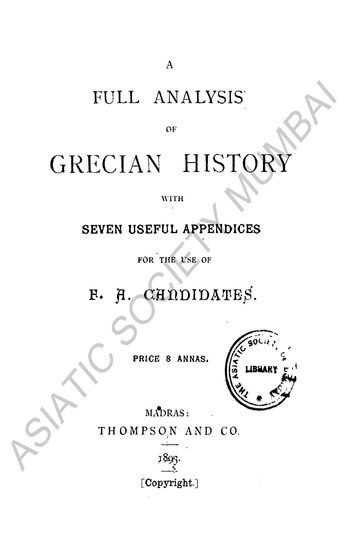 A Full Analysis of Grecian History; with seven useful Appendices for the use of B. A. Candidates