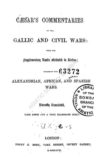 Caesar'S Commentaries on the Gallic and Civil Wars: with the Supplementary Books Attributed to Hirtius, Including the Alexandrian, African, and Spanish Wars, Literally Translated, with Notes and a Very Elaborate Index