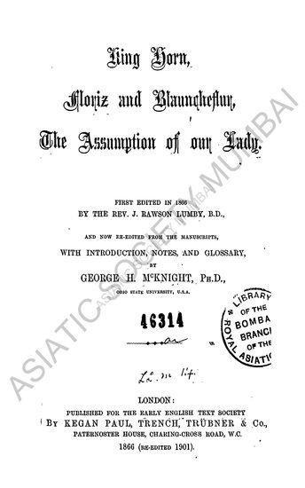 King Horn, Floriz and Blauncheflur, the Assumption of O ...