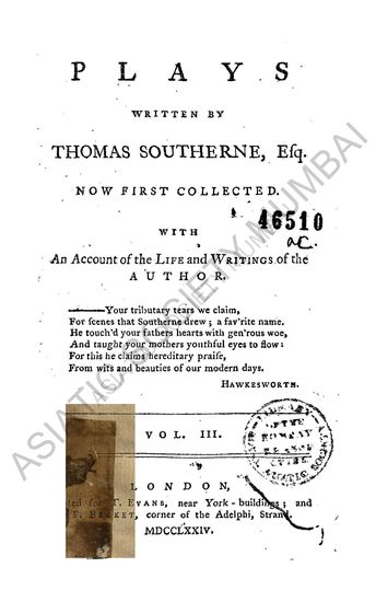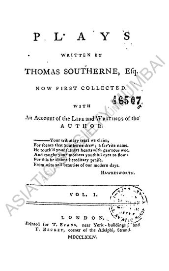 Plays written by Thomas Southerne; now first collected, with an Account of the Life and Writings of the Author, Vol. I