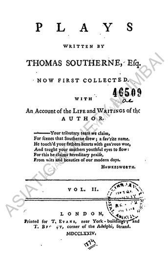 Plays written by Thomas Southerne; now first collected, with an Account of the Life and Writings of the Author, Vol. II
