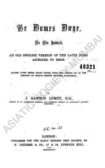 Be Domes Daege, de die Judicc, an Old English version of the Latin Poem ascribed to Bede