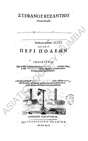 Stephanu Byzantinu ethnika kat' epitomio, Stephani Byza ...