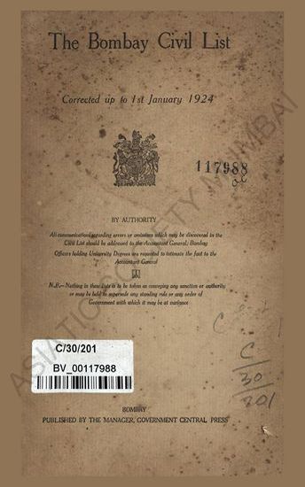 Bombay quarterly civil list corrected to the 1st July 1 ...