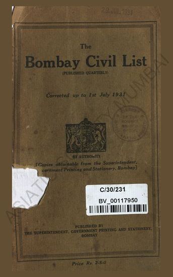 Bombay army list,and the Bombay civil list, including the ecclesiastical establishment 1st October 1878, corrected up to the 30th September 1878.