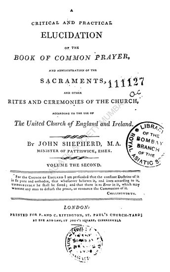 Critical and Practical Elucidation of the Book of Common Prayer and Administration of the Sacraments and Other Rites and Ceremonies of the Church According to the Use of the United Church of England and Ireland
