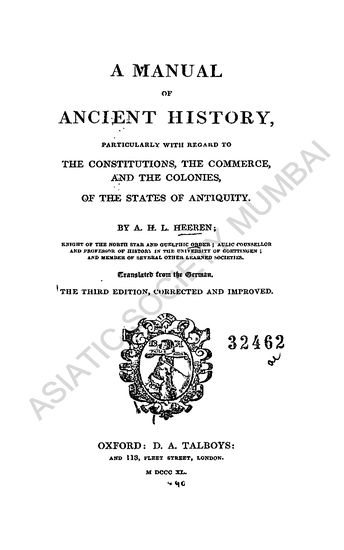 Manual Of Ancient History,Particularly With Regard To The Constitutions, The Commerce, And The Colonies, Of The States Of Antiquity
