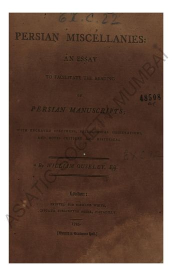 Persian Miscellanies: An Essay to Facilitate the Reading of Persian Manuscripts; with engraved Specimens, Philological Observations and Notes Critical and Historical