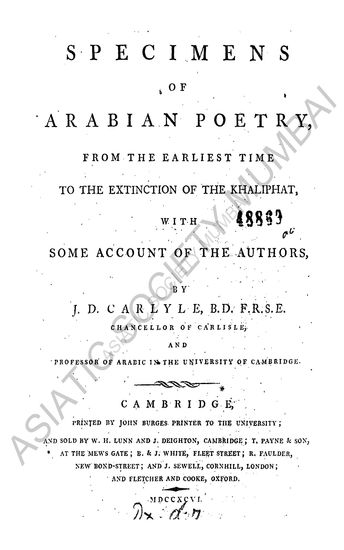 Specimens of Arabian Poetry; from the earliest time to the extinction of the Khaliphat with some account of the Authors