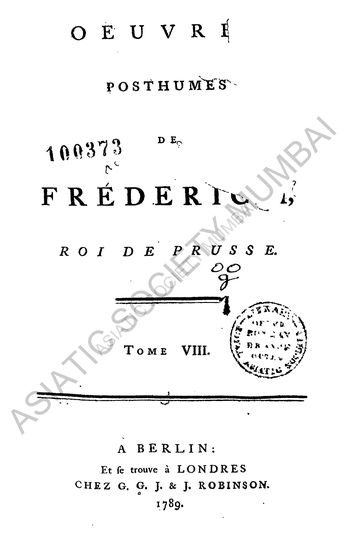 Oeuvres posthumes de Frederic II., roi de prusse, in Fifteen Volumes, Vol. VIII