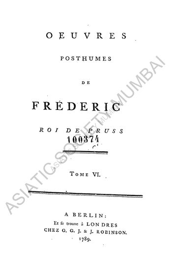 Oeuvres posthumes de Frederic II., roi de prusse, in Fi ...