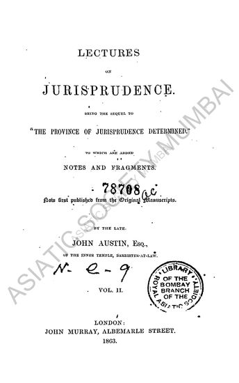 Lectures on Jurisprudence; being the sequel to the Province of Jurisprudence Determined, to which are added Notes and Fragments, Vol. II