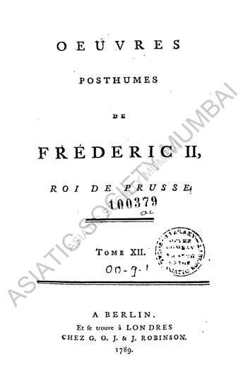 Oeuvres posthumes de Frederic II., roi de prusse, in Fifteen Volumes, Vol. XII