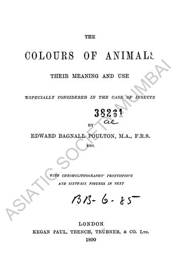 The Colours of Animals their Meaning and Use; especially considered in the Case of Insects