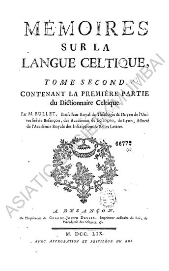 Memoires sur la Langue Celtique, Vol. II- Contenant la Premiere Partie du Dictionnaire Celtique