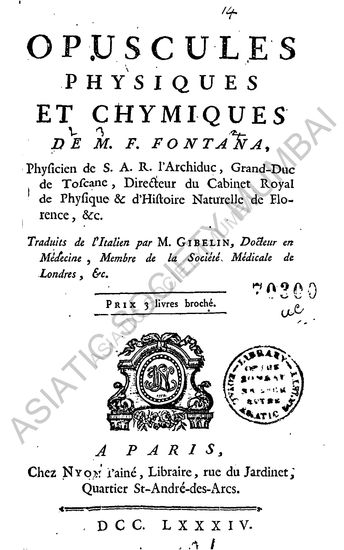 Opuscules Physiques et Chymiques, translated from Itali ...