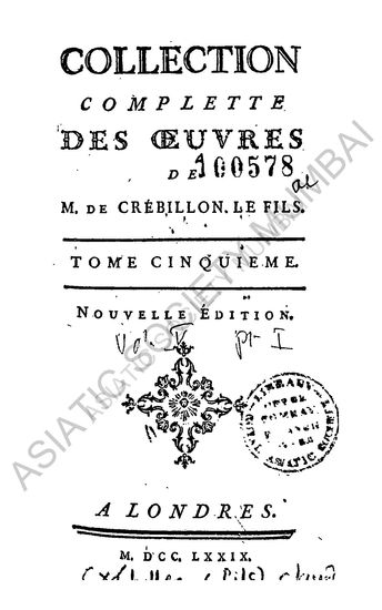 Collection complette des Oeuvres de M. de Crebillon le fils, New ed., Vol. V
