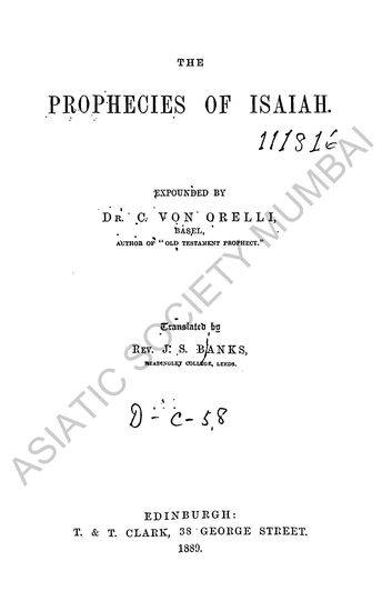 Orelli, C. von; Banks, J. S. Rev. (Tr.)