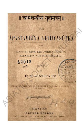 The Apastambiya Grihyasutra; with extracts from the commentaries of Haradatta and Sudarsanarya