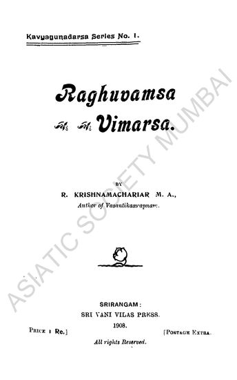 Raghuvamsa Vimarsa (Kavyagunadarsa Series No. I.)