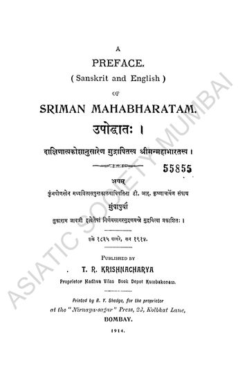Mahabharata; Krishnacharya, T. R. (Ed.); Vyasacha et al.