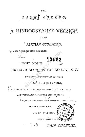The Baghi Oordoo : A Hindoostanee Version of the Persian Goolistan