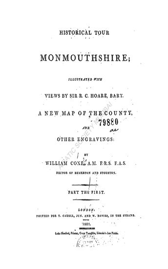 historical Tour in Monmouthshire Illustarted with Views by Sir R.C.Hoare: New Map of the Country and Other Engravings