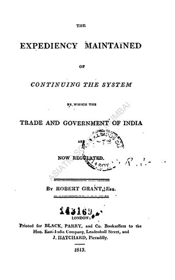 Expediency Maintained of Continuing the System by which the Trade and Government of India are Now Regulated