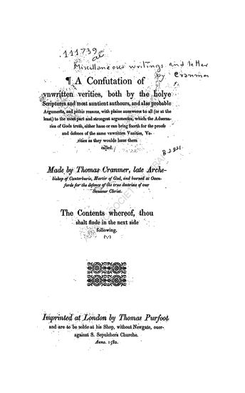 Miscellaneous Writings and Letters: a Confutation of Unwritten Verities, Both by the Holye Scriptures and Most Auntient Authors and Etc