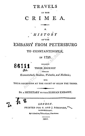 Travels in the Crimea, A history of the Embassy from Petterburg to Constantinople in 1793