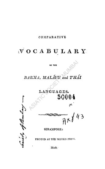 ComparatIVe Vocabulary of the Barma Malayu and Thai La ...