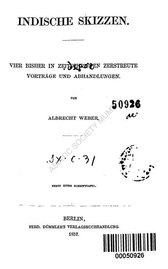Indische Skizzen. Vier Bisher in Zeitschriften Zerstreute Vortrage Und AbhandLungen
