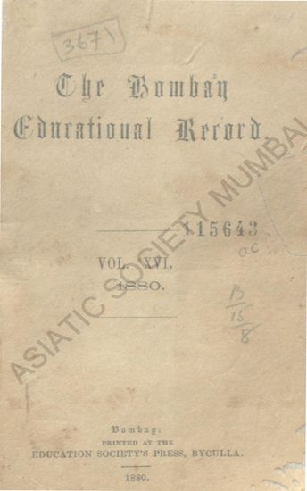 Supplement to the Bombay Educational Record March 1882being The Directory of the Bombay Educational Department for 1881-82,(Vol.XVIII)