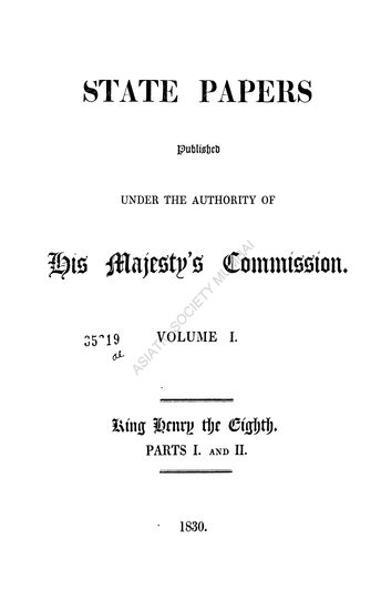 State Papers Vol 1 King Henry The Eight Pts I And Iii
