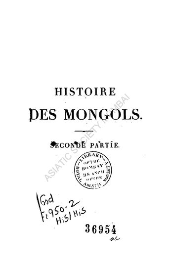 Histoire des mongols: depuis, tchnguiz khan jusqua timour - lang; in 2 vols.