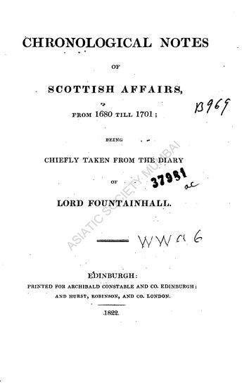 Chronological Notes Of Scottish Affairs From 1680 Till 1701