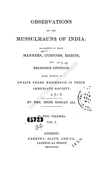 Observations on the Mussulmauns of India :2 Vols
