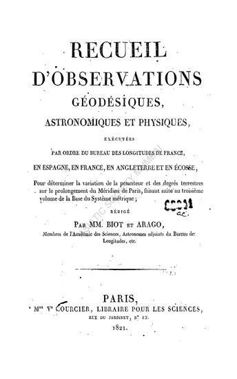 Recueil D'Observations Geodesiques, Astronomiques Et Physiques