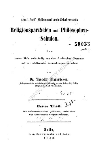 Schahrastani Abu-l-fath; Haarbrucker, Theodor