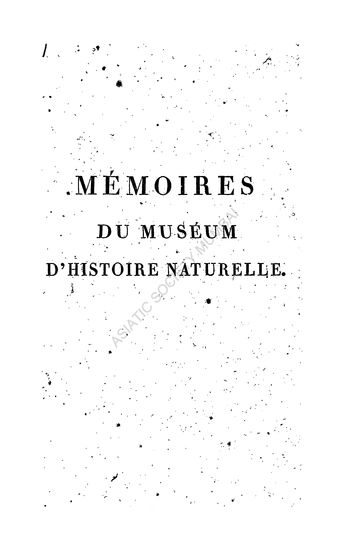 Memoires Du Muiseum D'Histoire Naturelle, (Vol.I)