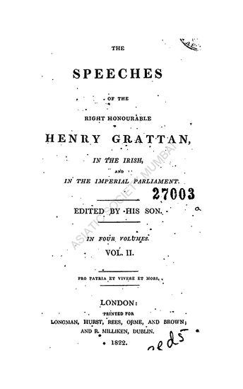 The Speeches, in the Irish and in the Imperial Parliament in 4 Vols, (Vol. II)