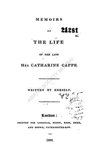 Memoirs of the Life of the Late Mrs.Catharine Cappe