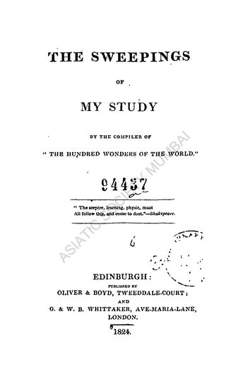 The Sweepings of My Study by the compiler of The Hunderd Wonders of the World.