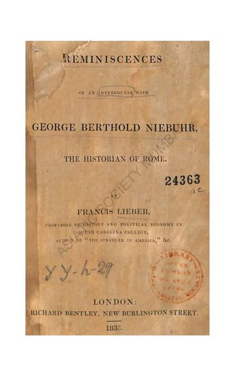 Reminiscences of an InterCourse With George Berthold Niebuhr, The Historian of Rome
