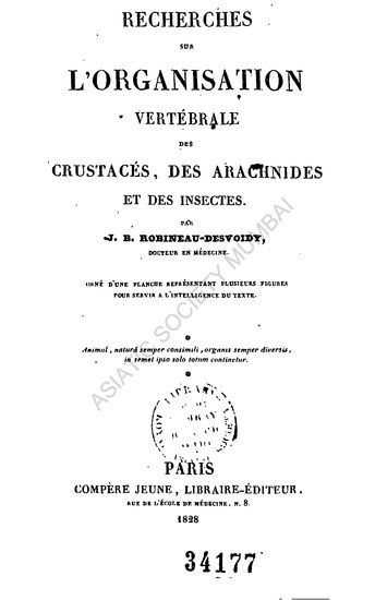 Recherches Sur L'organistion Vertebrale Des Crustaces Des Orachindes Et Des Insects