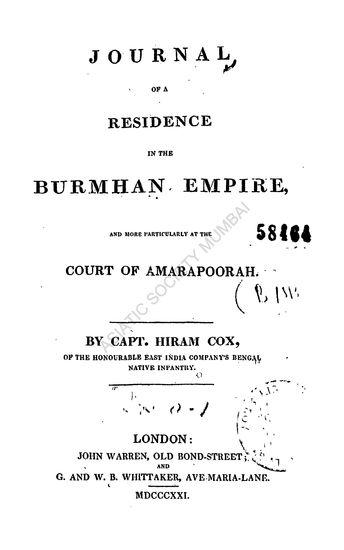 Journal of a Residence in the Burmhan Empire, and more particularly at the court of Amarapoorah
