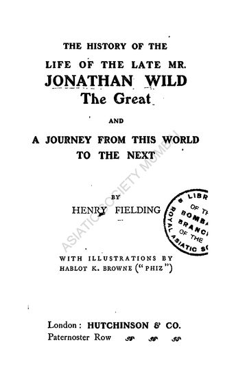 The History of the Life of the Late Mr Jonathan Wild the Great and Journey from This World to the Next;