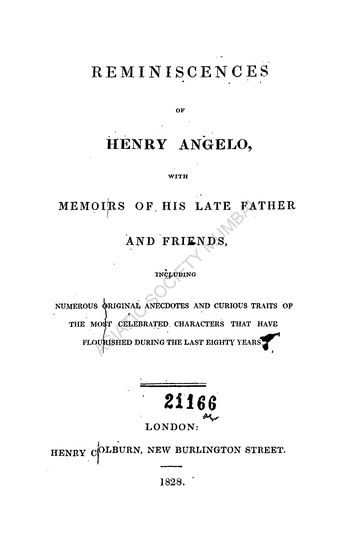 Reminiscences of Henry Angelo With Memoirs of his Late ...