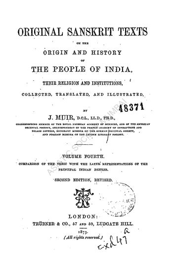 Original Sanskrit Texts on the Origin and History of the People of India, Their Religion and Institutions, Vol. IV