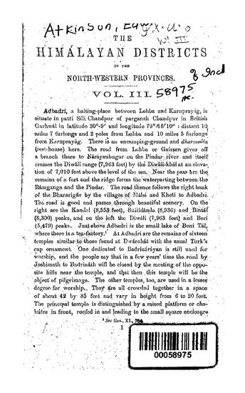 The Himalayan Districts of the Northwestern Provinces of India in 3 Vols., Vol. III
